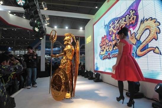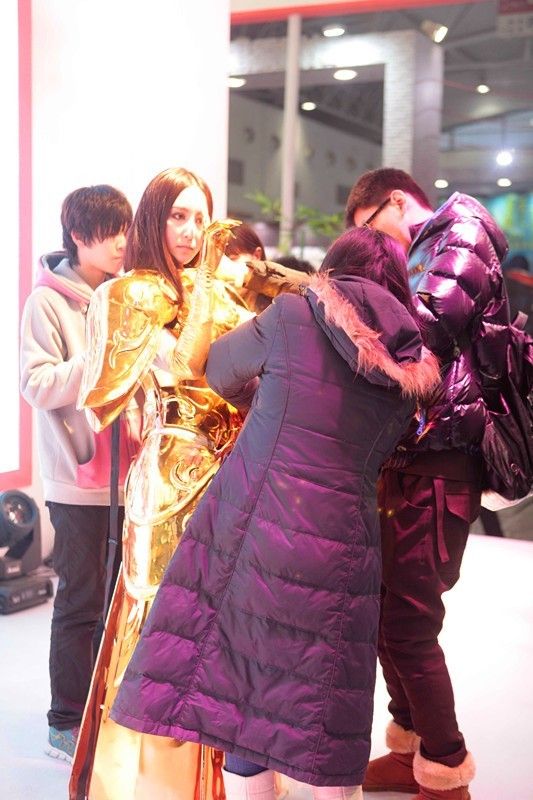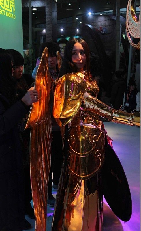 不得不承认,这次去网博会我啥收获也没有,唯一让我震惊的就是完美世界展台搞的黄金雅典娜现场COS,姑娘漂不漂亮我先不论,仅凭她能够现场穿上重达50公斤的黄金圣衣站在那里一动不动,像个女神一样,你就不得不被她折服,我真心佩服这妹子,不仅人长得好看,而且特别能吃苦啊,那么重的盔甲压在身上,据说光胸上那一快就有10公斤,你想想。。。。那得有多大的胸部承受力啊????佩服 。本屌丝佩服。