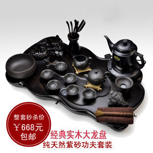 新款上市 品牌紫砂茶具加实木大龙盘(龙凤呈祥)包邮