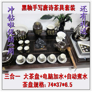 茶具 黑釉手写唐诗 整套茶具 三合一茶盘 特价