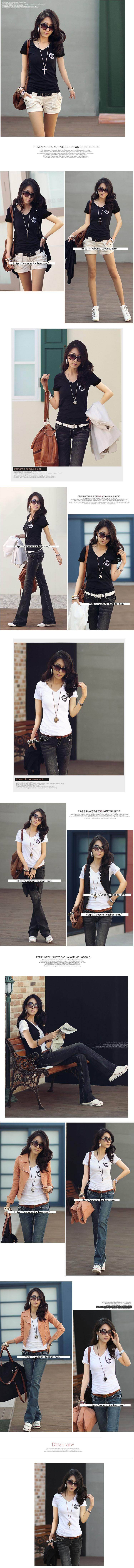 简约V领修身T恤短袖大码女装 【欧贝欧】2011新品女装
