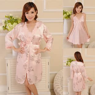 新款夏装 可爱性感真丝吊带睡裙两件套睡袍 套装睡衣女 价格:69元 查看详情