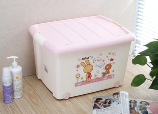 家居日用塑料整理箱粉色印花情侣图案带轮整理箱收纳箱杂物箱大号