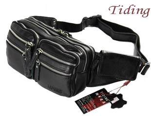 潮牛 多拉链立体大容量可调节宽度男士真皮腰包3017