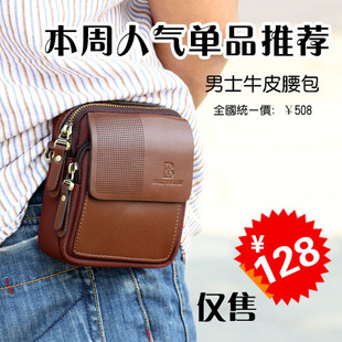 新 牛皮时尚精简男士腰包新款男式斜挎包 热销男包