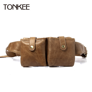 铜客夏季新款韩版户外休闲全牛皮时尚真皮男士腰包小包81006