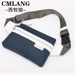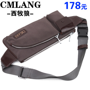 西牧狼小包男式腰包休闲时尚胸包小挎包男包蓝色帆布包男8066