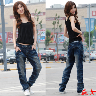 森女 女装深蓝色新款磨白宽松牛仔裤垮裤牛仔裤女牛仔长裤 9009 价格:98元 查看详情