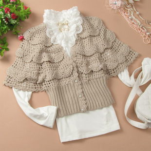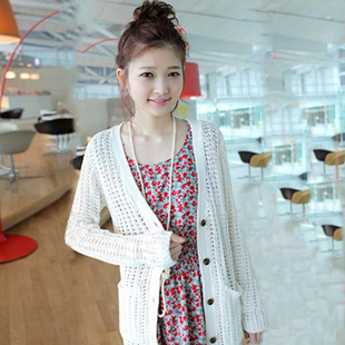 艾米恋 韩版秋装新款女装 镂空纯手勾花瓣型开衫针织衫 J4058 价格:88元 查看详情
