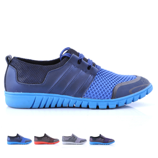 夏季升级版真皮网布时尚男士休闲鞋透气鞋男鞋