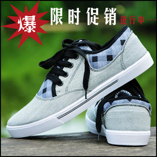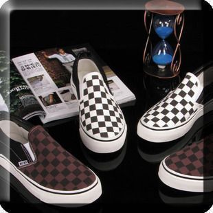 百搭懒人套脚格子 男款韩版休闲鞋 低帮情侣帆布鞋 特价