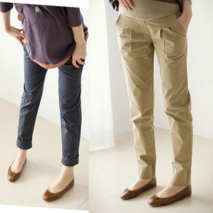 伊秀阁 孕妇装 孕妇打底裤 韩版 七分 纯棉 夏装 (褶 直筒选)