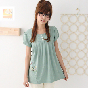 欧卡桑 孕妇装 夏装 韩版 孕妇上衣夏装短袖 棉 孕妇T恤