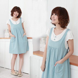 女之御 清爽蓝色孕妇裙夏装 孕妇连衣裙孕妇夏装 韩国孕妇装夏装