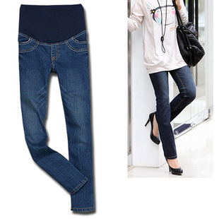 OULIMOM 韩版修身微弹孕妇裤 必备牛仔托腹裤孕妇装春夏铅笔裤