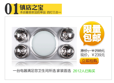 最好的浴霸淘宝店铺有哪些?功能和价格怎样?看看这个最新最好的浴霸排行榜就知道这是你想要的。本榜从淘宝系统统计的数据,精心挑选出淘宝销售最火的产品,希望大家在购买的过程中起到一个参考的作用。能让亲更加轻松,减少查找宝贝的时间,无需到处打听宝贝效果,免去上当受骗的担心。本排行榜将定期更新淘宝网前几名的浴霸 。