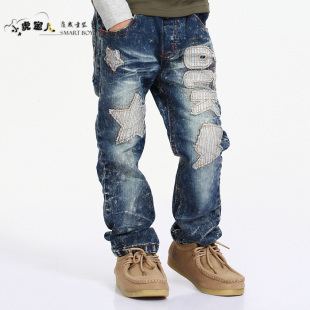 小虎宝儿童装 韩版贴布男童牛仔裤 儿童长裤 裤子 秋装新品