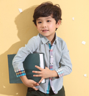 新款秋装韩版韩国童装儿童长袖衬衫格子男童纯棉