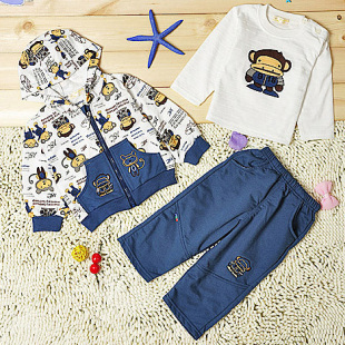 秋装新款0-3岁男童宝宝三件套纯棉套装婴儿童装 628