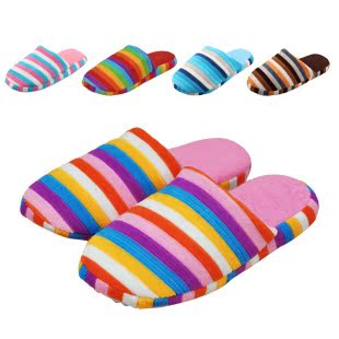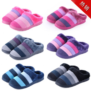 什么牌子的棉拖鞋好;2011新款棉拖鞋;彩条男女家居保暖鞋