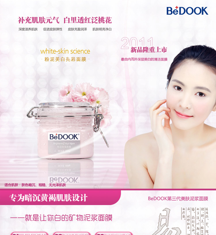 最有效的美白 面膜排行榜 第5名:BeDOOK粉泥亮采面膜 白皙水莹透红 补充肌肤元气 美白里透红泛桃