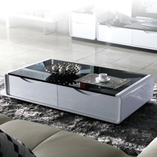 四:梦想家 时尚简约 优雅弧线 黑白经典 烤漆玻璃茶几DMM668