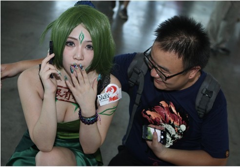 重点是,这些在爆.乳妹纸摧残之下的兄弟们,居然还能够像爷们一样的站着玩《激战2》,而且是尼玛站上一整天,这让那些座椅舒服、巨屏却无人问津的展位情何以堪。。。