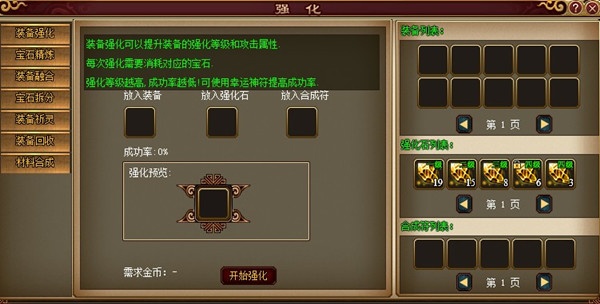 装备强化可增强装备的强化等级和攻击,可以说是提升装备能力乃至自身实力的重要途径之一。强化装备需要强化石和宝石,强化等级越高,自然也需要更高等级的强化石。值得一提的是,6711《武尊》大大创新了强化模式,游戏中装备的强化实质上是宝石的强化,即装备强化主要以宝石为载体。例如:将强化到+6等级装备上的宝石拆分下来,并镶嵌在其他武器上,则该武器强化等级即为+6。这新颖举措无疑大大简化了玩家的强化程序,节约了玩家在拆卸符、镶嵌符等方面的资源消耗。