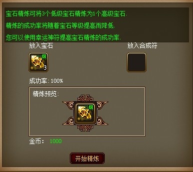 6711《武尊》玩家或许都有这样的体验:装备易取,宝石难得,想要直接获得高级宝石是比较困难的。其实玩家可以通过熔炉的宝石精炼功能来解决这个问题。熔炉的宝石精炼功能可以将3个低级宝石合成一个高一级的宝石,玩家收集大量低级宝石,就可以合成所需要的高级宝石了。必须一提的是,宝石的等级越高,合成时的成功率就越低。不过玩家可以使用幸运符来提高合成的成功率,另外,宝石精炼也需要消耗一定的金币。